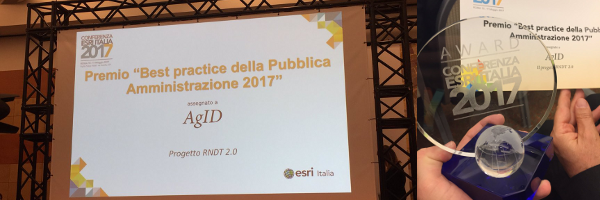 Nel corso della Conferenza ESRI Italia 2017 assegnato ad AgID il premio "Best Practice della Pubblica Amministrazione" per il progetto RNDT 2.0.