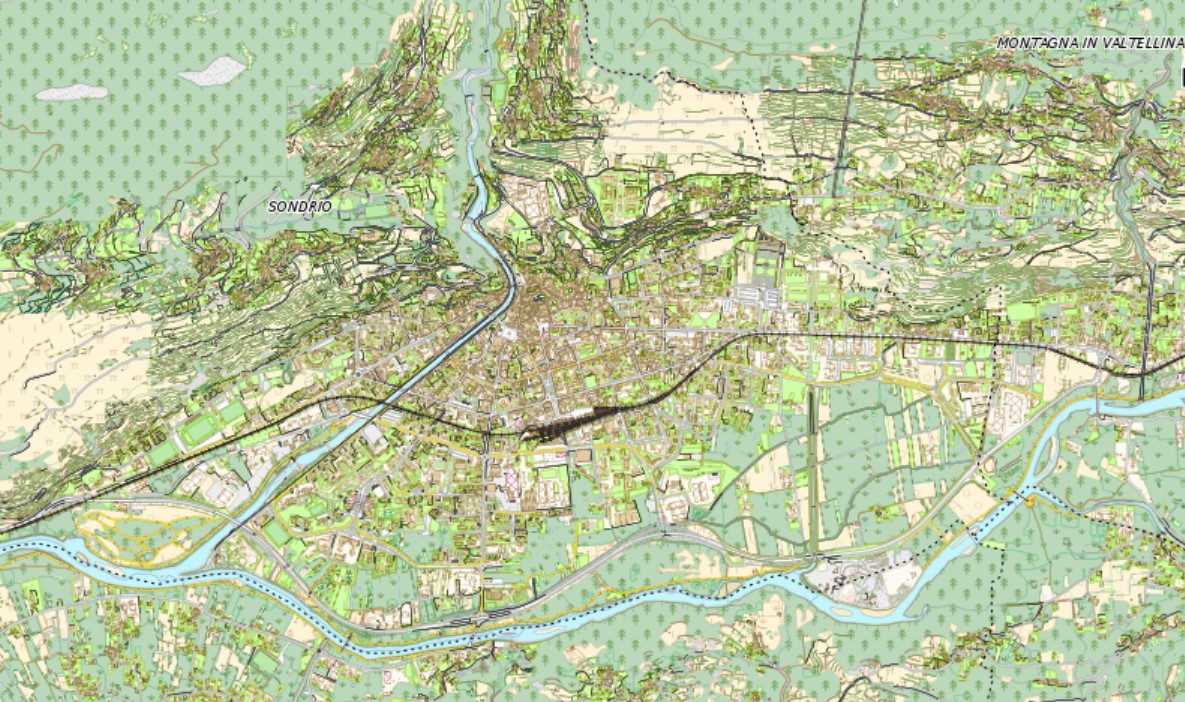 Rappresentazione della banca dati informatizzata e georeferenziata del territorio di tutti i 78 Comuni della Provincia di Sondrio. Contiene le tradizionali informazioni della cartografia tecnica e topografica (limiti amministrativi, viabilità, trasporti, ...