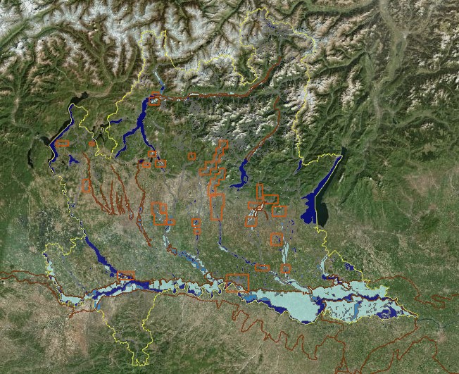 La mappa raccoglie, in maniera parziale e non esaustiva, le aree storicamente allagate dai corsi d’acqua compresi tra il Ticino e l’Adda. Le fonti delle informazioni sono diverse, così come la modalità di acquisizione e digitalizzazione delle aree; pertan...