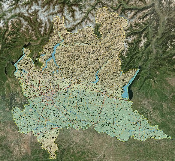 Carta fisica della Regione Lombardia. Realizzata nel 2002 come parte della pubblicazione "GEOgrafia e numeri della Regione Lombardia". E’ disponibile anche il servizio WMS (versione del WMS 1.3.0) che permette di visualizzare la carta fisica della Lombard...