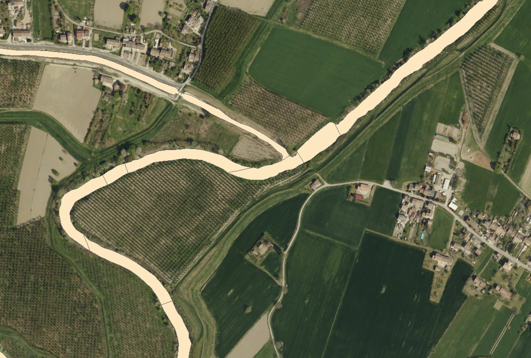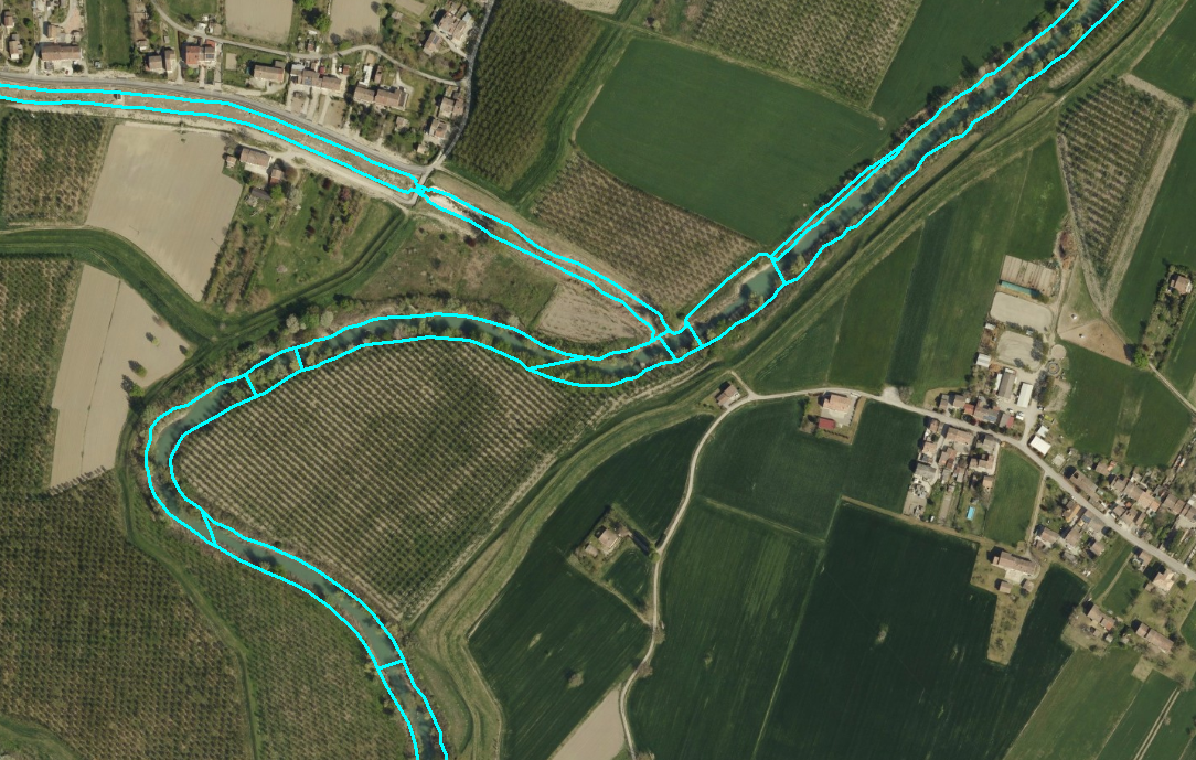 Superficie con presenza d’acqua, parte dell’alveo inciso di un corso d’acqua. (Sottoarea).