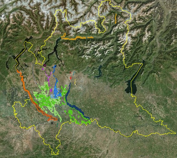 La mappa raccoglie, in maniera parziale e non esaustiva, le aree storicamente allagate dai corsi d’acqua compresi tra il Ticino e l’Adda. Le fonti delle informazioni sono diverse, così come la modalità di acquisizione e digitalizzazione delle aree; pertan...