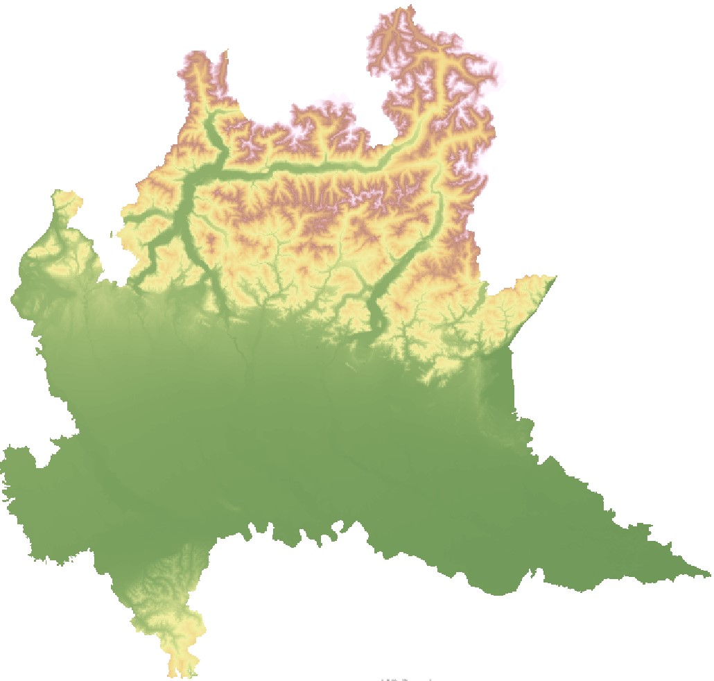 Il modello digitale del terreno è rappresentato da un DTM con struttura a griglia con passo di campionamento pari a 20 metri, che può essere utilizzato sia per analizzare l'andamento orografico del territorio lombardo, sia per effettuare studi di vario ti...