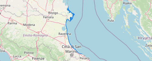 Aree allagabili predisposte nell'ambito del Piano di Gestione del Rischio di Alluvioni (vigente) per l'Unità di Gestione del bacino del Po (UoM-ITN008) e relative a scenari di media probabilità (M) - pericolosità media (P2) per le Aree Costiere Marine (AC...