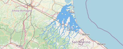 Aree allagabili predisposte nell'ambito del Piano di Gestione del Rischio di Alluvioni (vigente) per l'Unità di Gestione dei Bacini Romagnoli (UoM-ITR081) e relative a scenari di media probabilità (M) - pericolosità media (P2) per i Corsi d’Acqua Naturali...