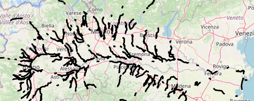 Aree allagabili predisposte nell'ambito del Piano di Gestione del Rischio di Alluvioni (vigente) per l'Unità di Gestione del bacino del Po (UoM-ITN008) e relative a scenari di scarsa probabilità (L) - pericolosità bassa (P1) per il Reticolo secondario di ...