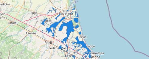Aree allagabili predisposte nell'ambito del Piano di Gestione del Rischio di Alluvioni (2024-07-30) per l'Unità di Gestione dei Bacini Romagnoli (UoM-ITR081) e relative a scenari di media probabilità (M) - pericolosità media (P2) per il Reticolo Secondari...