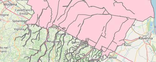 Aree allagabili predisposte nell'ambito del Piano di Gestione del Rischio di Alluvioni (2024-04-23) per l'Unità di Gestione del bacino Reno (UoM-ITI021) e relative a scenari di scarsa probabilità (L) - pericolosità bassa (P1) per i Corsi d’Acqua Naturali ...