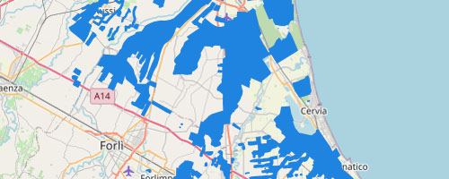 Aree allagabili predisposte nell'ambito del Piano di Gestione del Rischio di Alluvioni (2024-07-30) per l'Unità di Gestione dei Bacini Romagnoli (UoM-ITR081) e relative a scenari di media probabilità (M) - pericolosità media (P2) per i Corsi d’Acqua Natur...