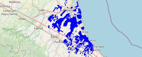 Aree allagabili predisposte nell'ambito del Piano di Gestione del Rischio di Alluvioni (ottobre 2022) per l'Unità di Gestione dei Bacini Romagnoli (UoM-ITR081) e relative a scenari di elevata probabilità (H) - pericolosità elevata (P3) per i Corsi d’Acqua...