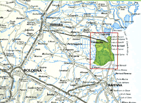 Carta del pregio naturalistico - Parco regionale del Delta del Po - Stazioni Centro storico e Valli di Comacchio - Edizione 1999